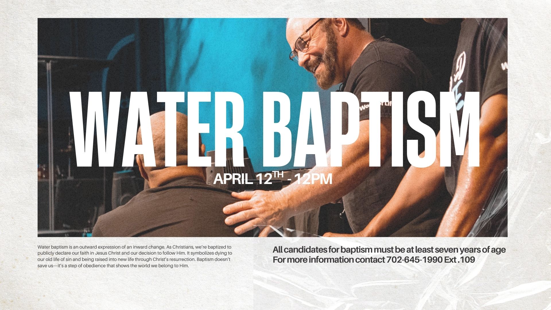 If you are born again, water baptism is an important step of obedience to the Word of God. It is also an outward sign of God’s work in your life. If you would like to be baptized, register online today. All candidates for baptism must...